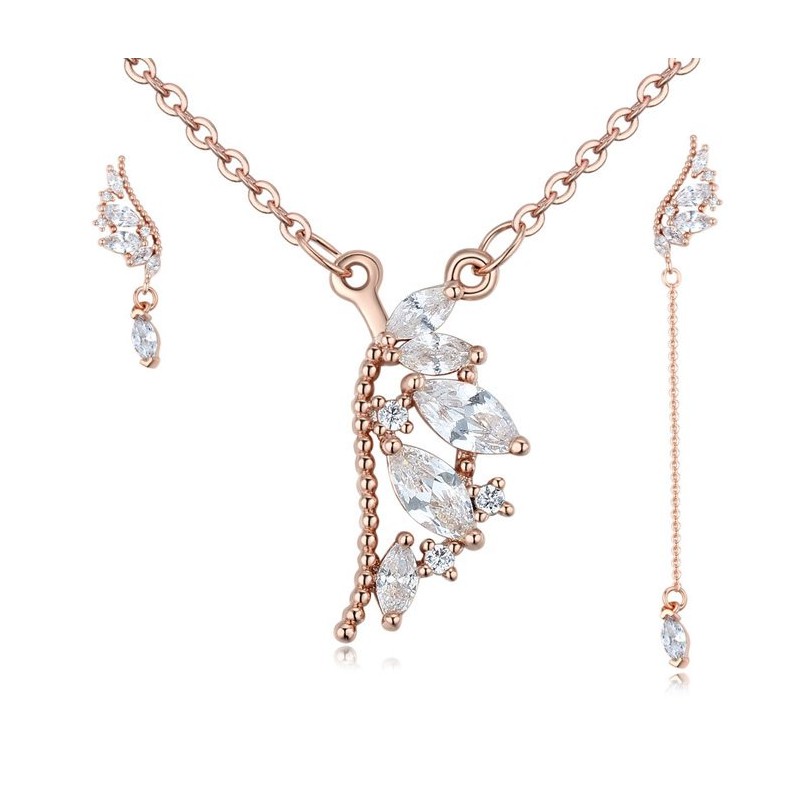 Нежен комплект инкрустиран с блестящ цирконий . Стилен и елегантен, с красив дизайн и перфектно качество на изработка.