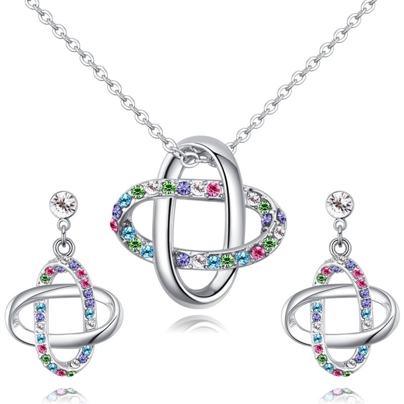 Луксозен позлатен комплект инкрустиран с бляскави кристали . Перфектно качество на изработка, красив и модерен дизайн, подходящ за дами на всяка възраст.