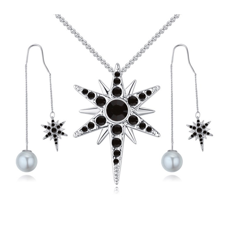 Елегантен, позлатен комплект, инкрустиран с блестящи, кристални перли и кристали . Стилен и луксозен, с класически дизайн и перфектно качество на изработка. Подходящ за дами на всякаква възраст. Опаковка: Луксозна кутия и сертификат на марката.