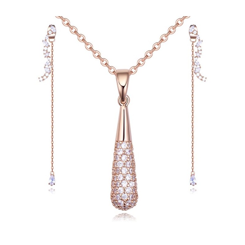Нежен комплект инкрустиран с блестящ цирконий . Стилен и елегантен, с красив дизайн и перфектно качество на изработка.