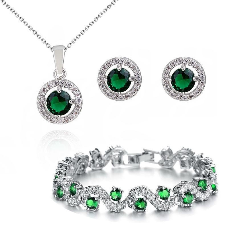 Нежен комплект от три части, инкрустиран с блестящ цирконий . Стилен и елегантен, с красив дизайн и перфектно качество на изработка. Опаковка: Луксозна кутия и сертификат на марката.