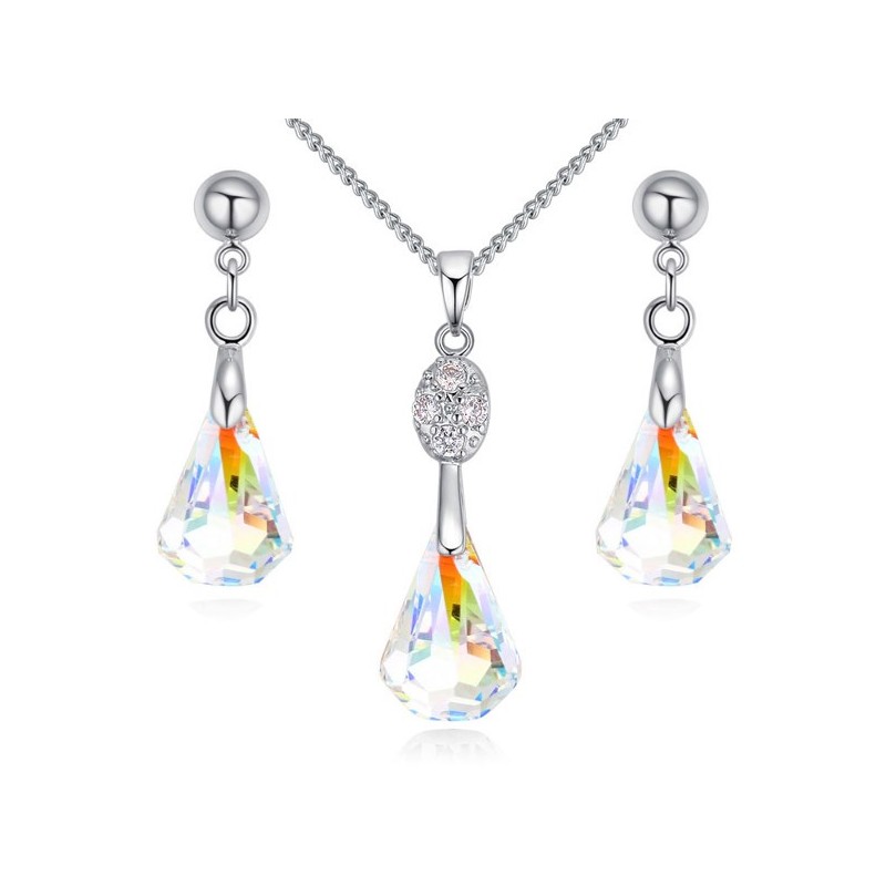 Луксозен комплект инкрустиран с красиво фасетирани, цели кристали . Стилен, с елегантен дизайн и перфектно качество на изработка, не предизвиква алергии, не потъмнява.