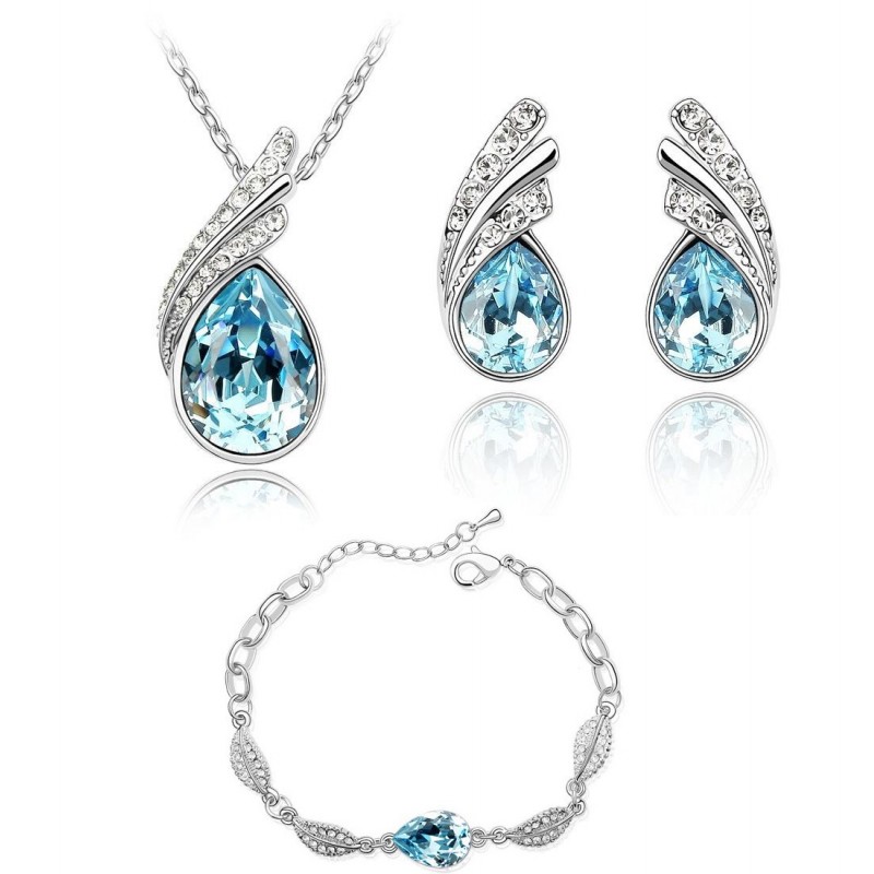 Луксозен, позлатен комплект от три части инкрустиран с бляскави кристали . Перфектно качество на изработка, красив и интересен дизайн, подходящ за дами на всяка възраст. Опаковка: Луксозна кутийка и сертификат на марката.