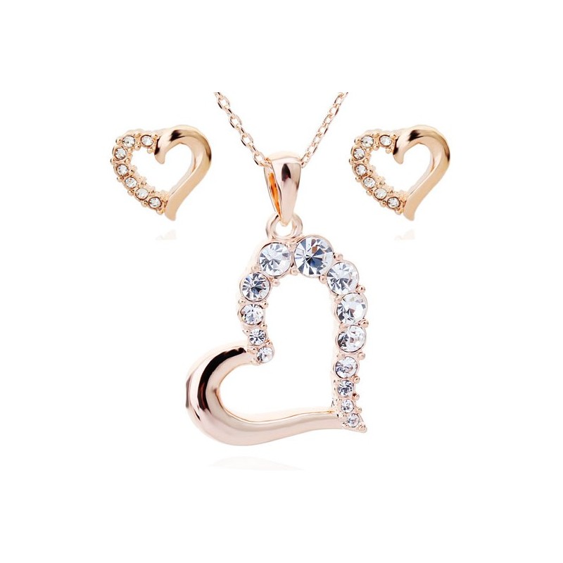 Елегантен комплект Сърца, инкрустиран с луксозни кристали . Един прекрасен и фин начин да кажете:"Обичам те." на любимите за Вас хора. Изключително качествена изработка, анти алергичен. Подходящ за дами на всяка възраст.