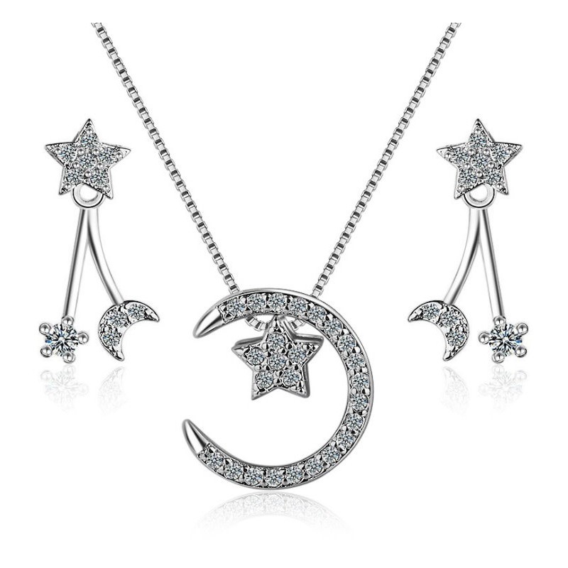 Нежен комплект инкрустиран с блестящ цирконий . Стилен и елегантен, с красив дизайн и перфектно качество на изработка.