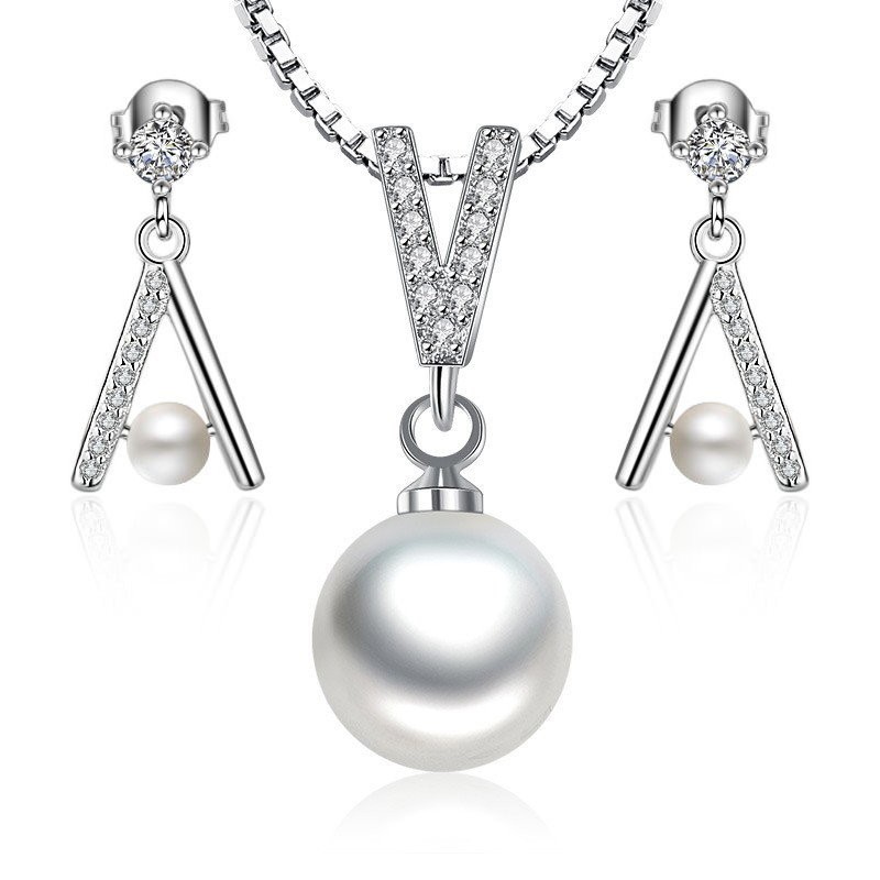 Елегантен, позлатен комплект инкрустиран с луксозни кристали и кристални перли . Направен от качествена ювелирна сплав - не потъмнява, не променя цвета си, не съдържа никел и не предизвиква алергии. С 18 каратово бяло, златно покритие на металните елементи, изключително бляскав и красив.