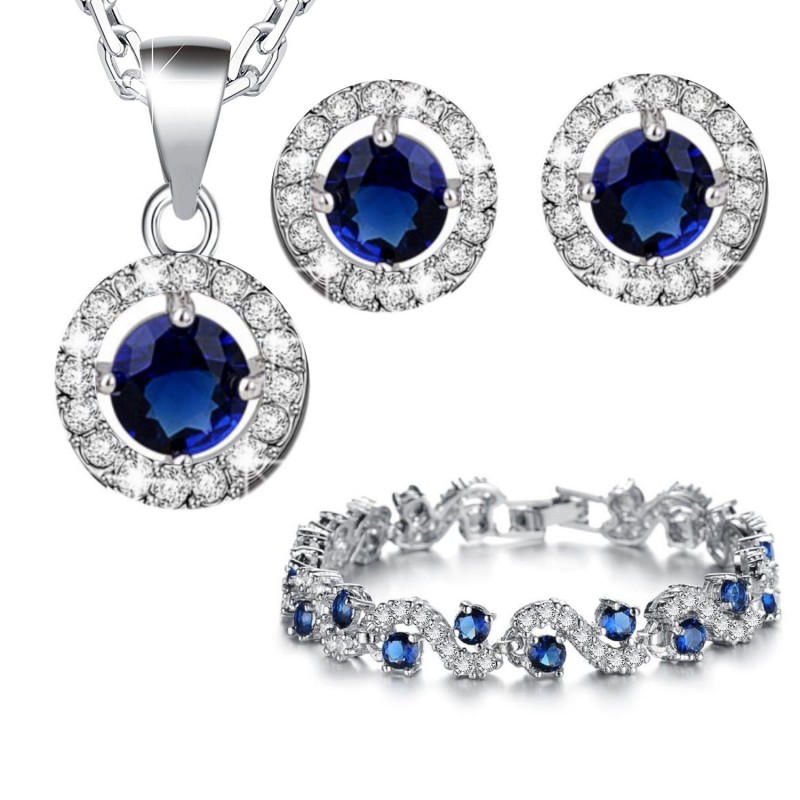 Нежен комплект  от три части, инкрустиран с блестящ цирконий . Стилен и елегантен, с красив дизайн и перфектно качество на изработка. Опаковка: Луксозна кутия и сертификат на марката.