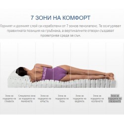 • 7-зонов пенолатекс: Горният и долният слой са изработени от 7-зонов пенолатекс, който осигурява правилна поддръжка на гръбнака и разпределя тежестта на тялото равномерно.
