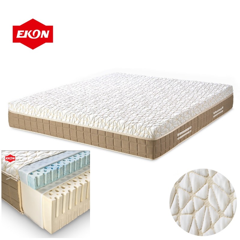 • Ядро: 100% естествен латекс със 7 комфортни зони, които предоставят оптимална поддръжка на тялото и намаляват напрежението върху гръбнака и ставите.