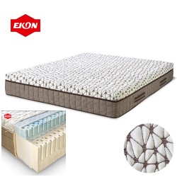 • Горен слой: 7-зонов ЛАТЕКС GEL, който комбинира дишаща латексна пяна с иновативни COOL GEL микро капсули. Този слой регулира температурата, като абсорбира и освобождава топлината, осигурявайки приятно усещане за прохлада през цялата нощ.
