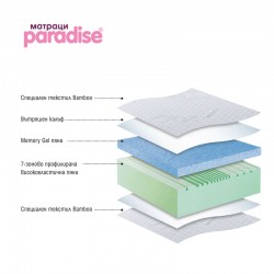 Бамбу Мемори Гел е специално разработен модел с ядро от зоново профилирана високоеластична HR пяна и слой от Memory пяна с охлаждащи гел капсули. Memory Gel пяната се моделира според температурата на тялото и приема формата на неговите извивки, създава приятно чувство за прохлада като осигурява отлична терморегулация на тялото по време на сън. Модел Бамбу Мемори Гел се предлага със сваляем калъф с цип от луксозен текстил Bamboo. Естественото бамбуково влакно, съдържащо се в този текстил, се отличава със здравина и способност да “диша". Има и естествени антибактериални свойства, бързо абсорбира влагата, поддържа суха среда и осигурява здравословна грижа от природата.