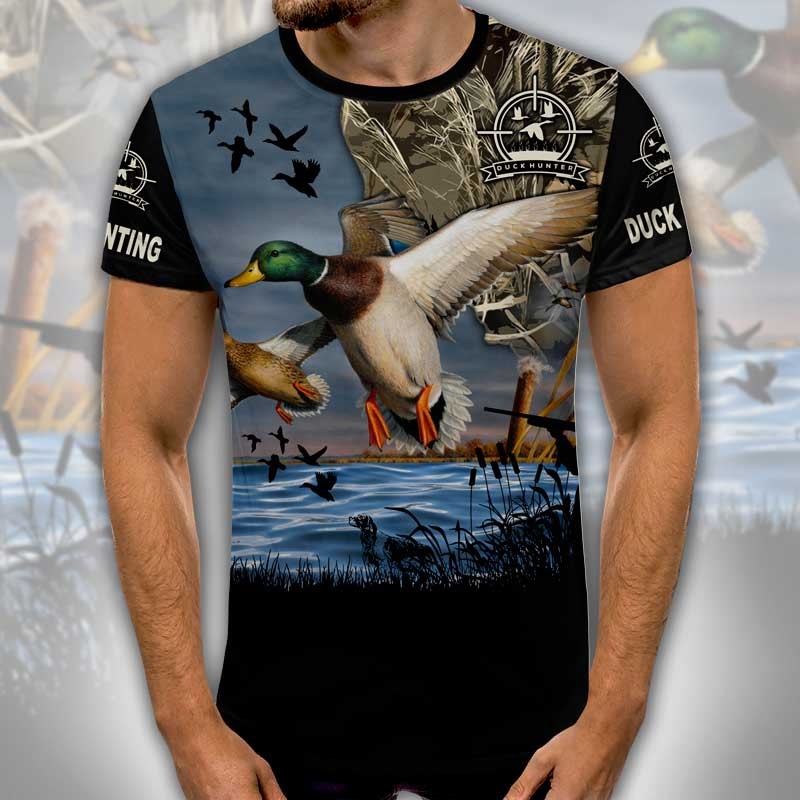 3D Мъжка тениска с ловни мотиви Duck Hunter