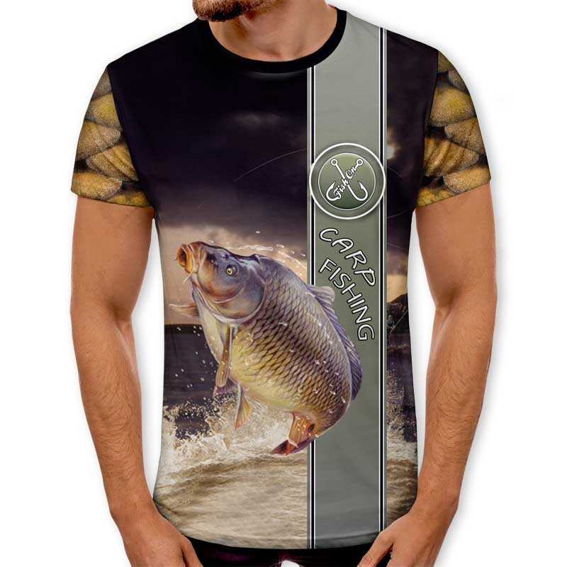 3D Мъжка тениска с рибарски мотиви Carp Catfish