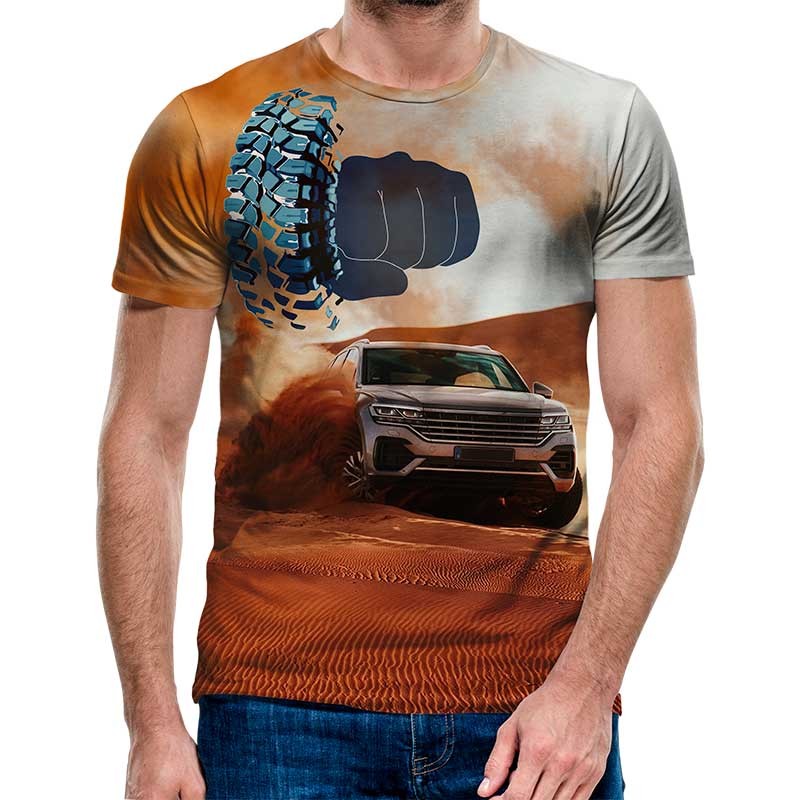 Представяме ви 3D тениска с привличащо вниманието изображение на автомобил - идеалното облекло за любителите на моторни превозни средства! Изработена от висококачествена полиестерна тъкан с ликра, тази тениска предлага комфортно разтягане до 5%, което гарантира плътно прилягане. Технологията за цифров печат, използвана в производствения процес, запазва яркостта на цветовете, като гарантира, че изображението на автомобила остава ярко дори след многократно пране.