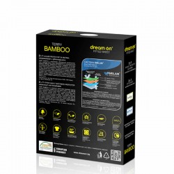 TERRY BAMBOO е непромокаем, двойнодишащ калъф-протектор с преграда срещу акари,благодарение на интелигентната мембрана BRILAM.Бамбуковите влакна съдържат естествен антиалергичен агент, който предпазва от развитието на бактерии. Това прави бамбуковата тъкан изключително подходяща за хора склонни към алергии.Продуктите от бамбук имат способността да дишат , абсорбират влагата от кожата, като я запазват суха и създават по-благоприятна среда за сън. Благодарение на тези си качества действа и като естествен дезодорант. TERRY BAMBOO гарантира естествена антиалергична среда за сън.