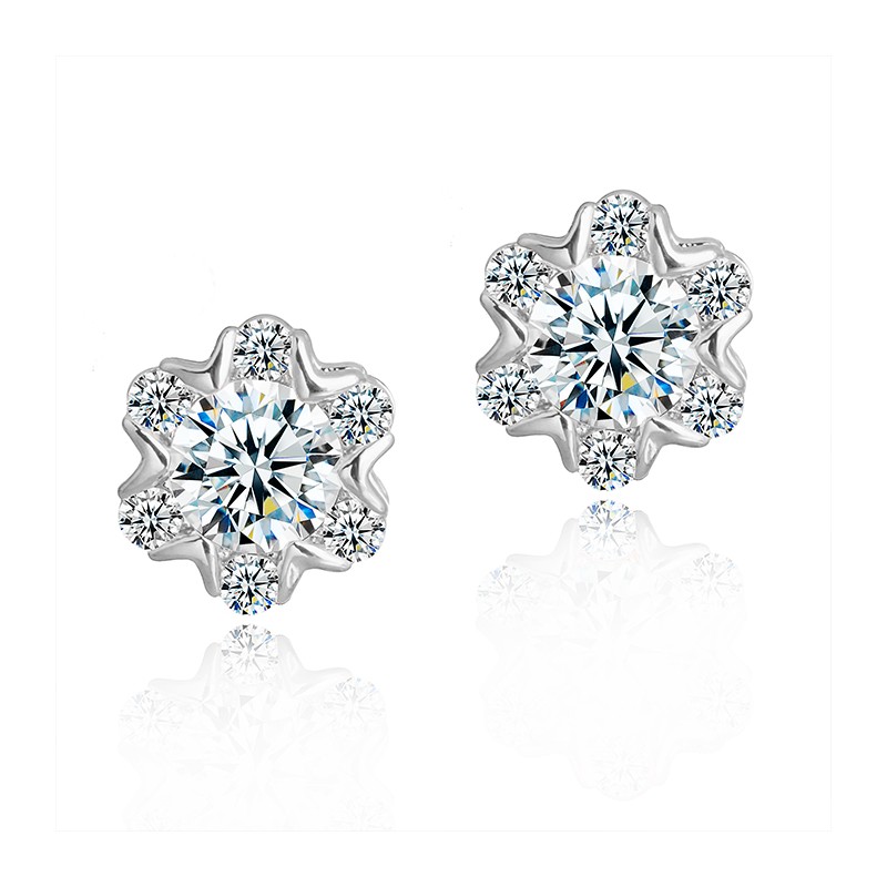 Елегантни обеци инкрустирани с кристалиен цирконий. Стилни, с класически дизайн, анти алергични, леки и удобни за носене.
