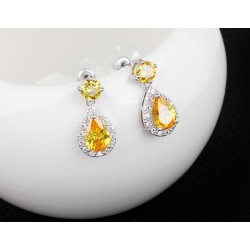 Елегантен и фин модел обеци инкрустирани с луксозен, кристален цирконий . Изключително качествено изработени, анти алергични, подходящи за стилни и изискани дами на всяка възраст. Опаковка: Луксозна кутия и сертификат.
