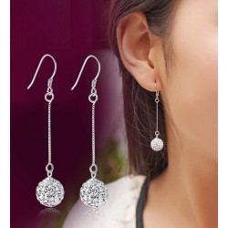 Изключително нежни обеци, със сребърно окачване/ проба 925/ инкрустиран с блестящи кристали . Стилни и елегантни, с класически дизайн и перфектно качество на изработка, леки и удобни за носене. Този модел обеци е бил винаги най-предпочитан от дамите, заради красивия начин, по който стои на ухото.