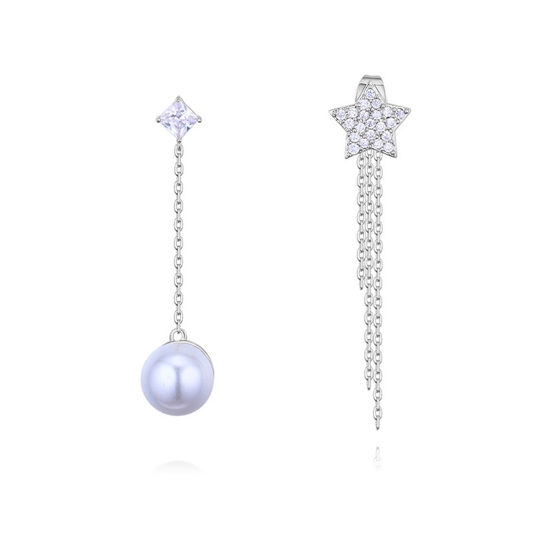 Елегантни обеци инкрустирани с кристален цирконий и перли . Стилни, модерни, анти алергични, леки и удобни за носене.