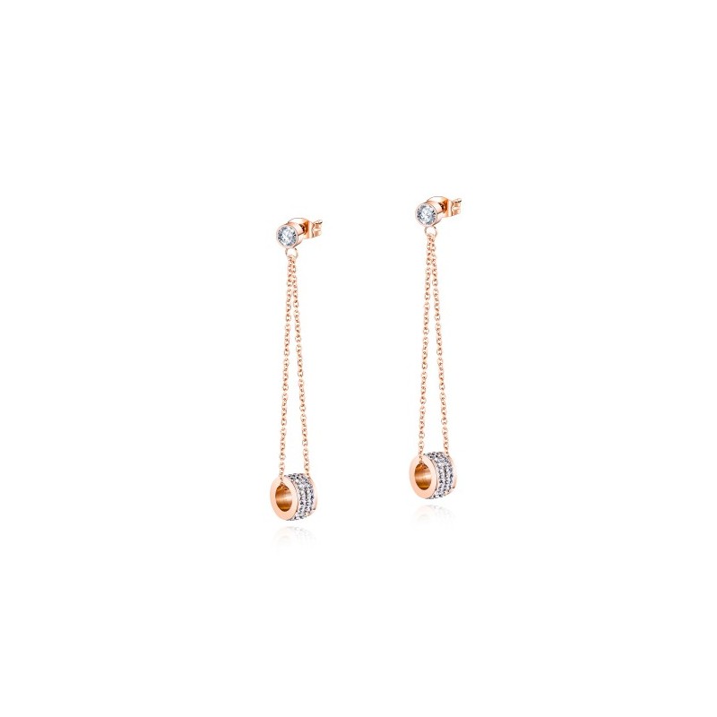 Луксозни, позлатени обеци инкрустирани с бляскави кристали . Едно истинско предизвикателство за ценителите на шикозните и елегантни бижута. Перфектно качество на изработка, красив и модерен дизайн, подходящ за изискани дами.