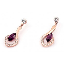 Стилни и ефектни обеци , инкрустирани с кристали . Материал на металната част специална бижутерийна сплав - не потъмнява, не променя цвета си, без съдържание на никел, антиалергична. С 18 каратово жълто златно покритие. Големина на обеците 30х12мм., закопчават се с винт с допълнителен силиконов стопер, който ги фиксира към ухото. Леки и удобни за носене. Опаковани са в луксозна кутия със сертификат!