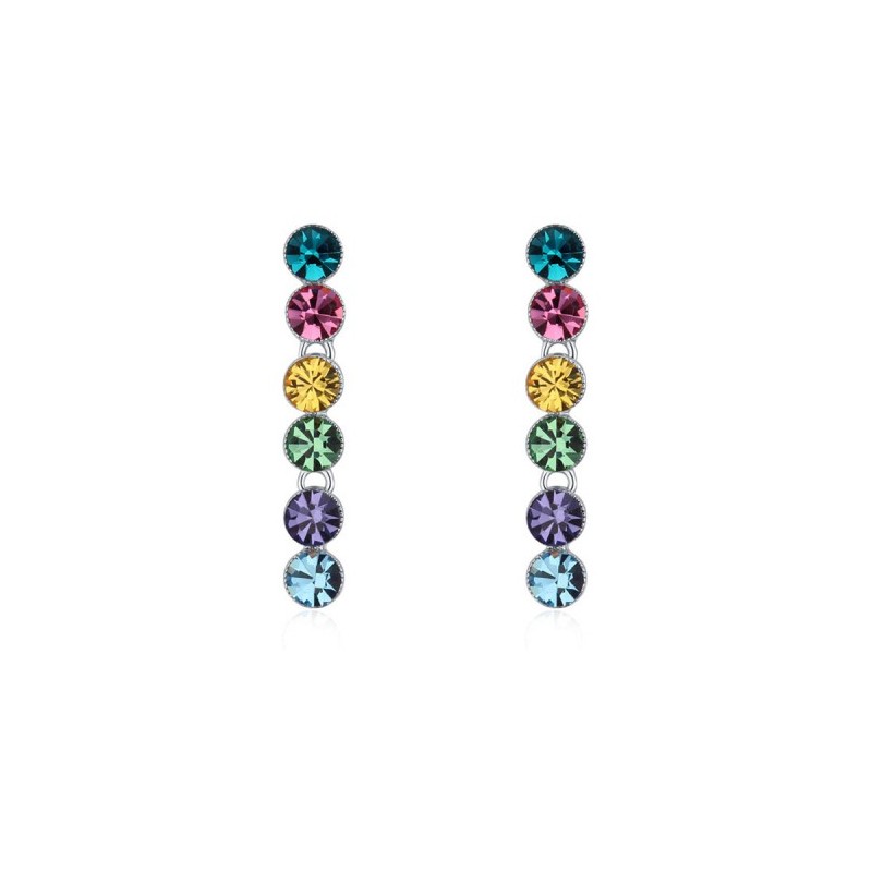 Елегантни, висящи обеци, инкрустирани с луксозни кристали , привличащи погледите с интересния си дизайн и нежния си блясък. Изключително качествено изработени, подходящи за дами на всяка възраст. Анти алергични, леки и удобни за носене.