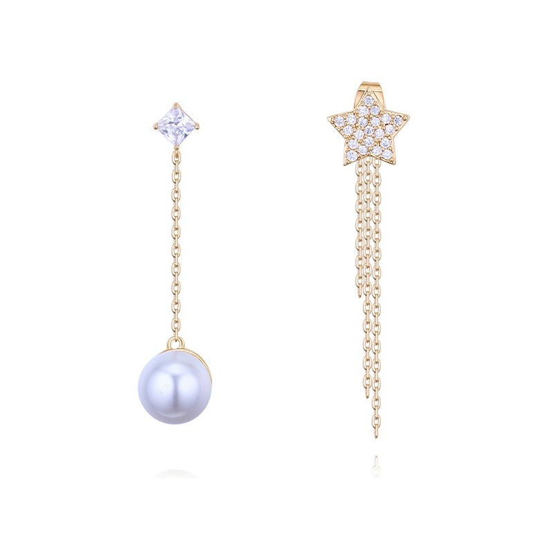 Елегантни обеци инкрустирани с кристален цирконий и перли . Стилни, модерни, анти алергични, леки и удобни за носене.