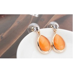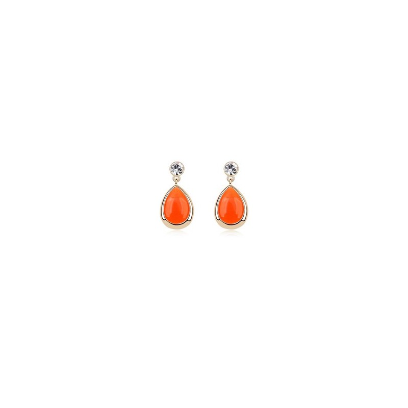 Нежни, позлатени обеци, инкрустирани с блестящи кристали тип cat stone. Изключително качествено изработени със стилен и елегантен дизайн. Металната част е анти алергична и не съдържа никел. Покритието на обеците е 18 каратово жълто позлатяване, което прави блясъка им великолепен и дълготраен. Опаковка: Луксозна кутийка и сертификат на марката.