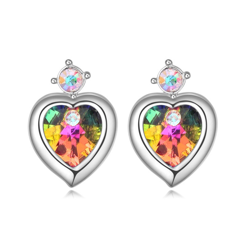 Нежно проблясващи, зелени сърчица, декорирани с бели, фино фасетирани кристалчета. Задната част на обеците е с елегантен метален обков, който предпазва кристала от нараняване. Качествена и прецизна изработка, доказано антиалергични с покритие от бяло злато.Размер на сърчицата 13x18 мм, закопчаването им е с винтче, което е уплътнено със силиконов стопер, фиксиращ поставянето им на ухото.