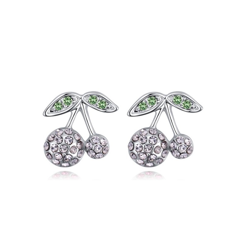 Елегантни обеци с актуалната форма на черешка, с които може да подчертаете вашата уникалност и оригиналност, инкрустирани с луксозни кристали . Модел с интересeн дизайн, символ на пролетта, младостта, възраждането в природата. Изключително качествено изработени, анти алергични, подходящи за стилни и романтични дами на всяка възраст. Леки и много удобни за носене.