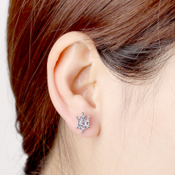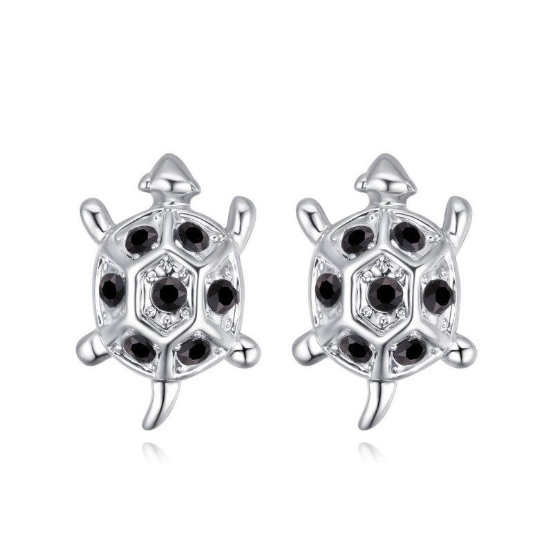 Нежни обеци с актуалната форма на костенурки, с които може да подчертаете вашата уникалност и оригиналност, инкрустирани с луксозни кристали . Модел с интересeн дизайн, символ на дълголетие, мъдрост, успех, късмет и щастие. Изключително качествено изработени, анти алергични, подходящи за стилни и романтични дами на всяка възраст. Леки и много удобни за носене.