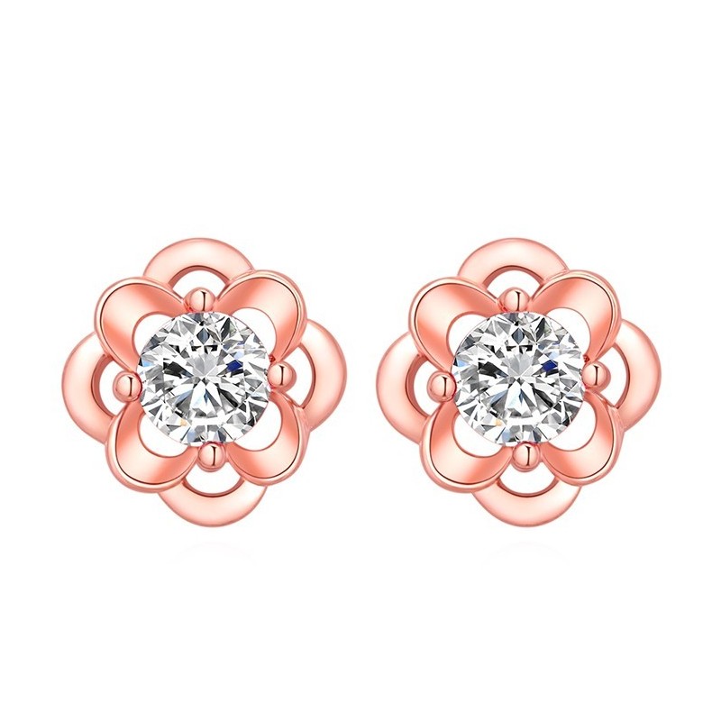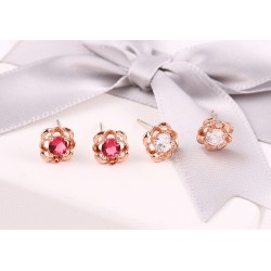 Елегантни обеци цвете инкрустирани с блестящ, кристален цирконий . Стилни, с интересен дизайн, анти алергични, леки и удобни за носене.