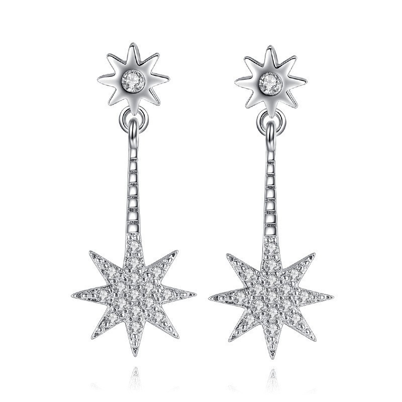 Елегантни обеци инкрустирани с блестящ, кристален цирконий . Стилни, анти алергични, леки и удобни за носене.