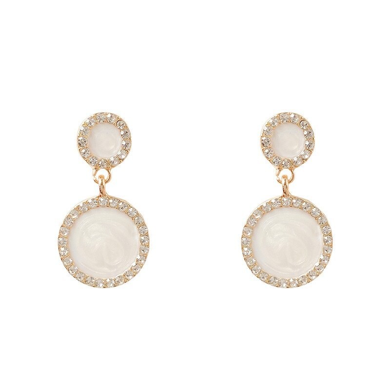 Блестящи, позлатени обеци, инкрустирани с кристали тип cat stone. Изключително качествено изработени със стилен и елегантен дизайн. Металната част е анти алергична и не съдържа никел. Покритието на обеците е 18 каратово бяло позлатяване, което прави блясъка им великолепен и дълготраен.
