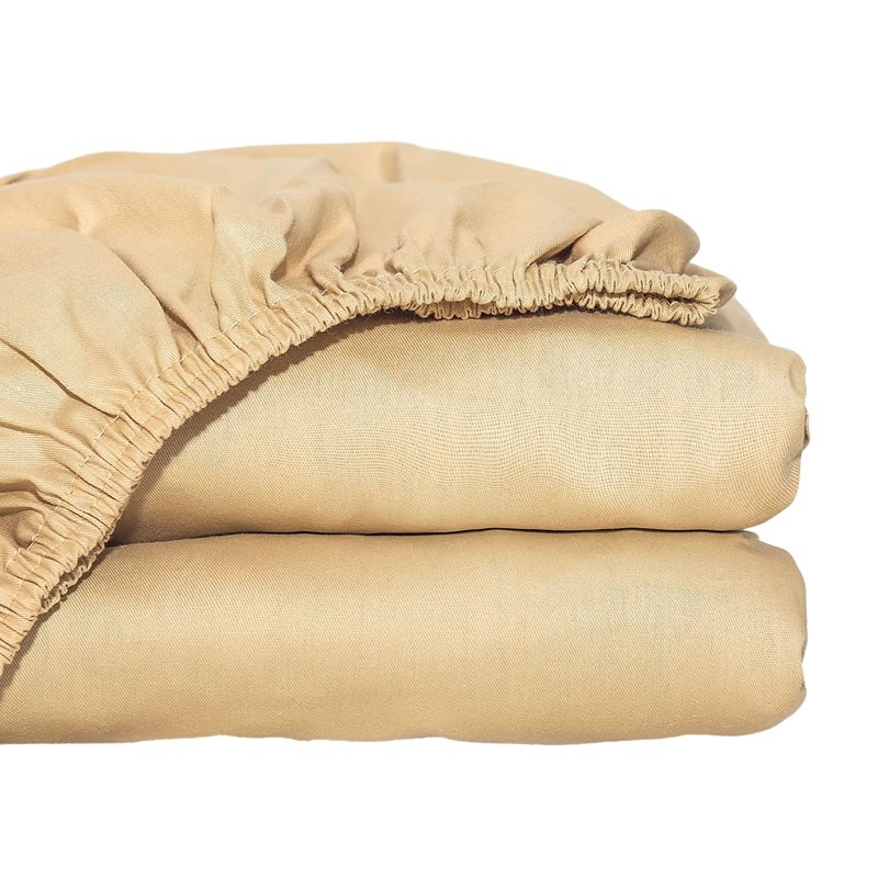 Чаршаф памучен сатен с ластик, тъмно Бежово 25см