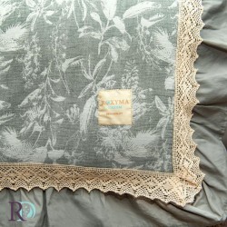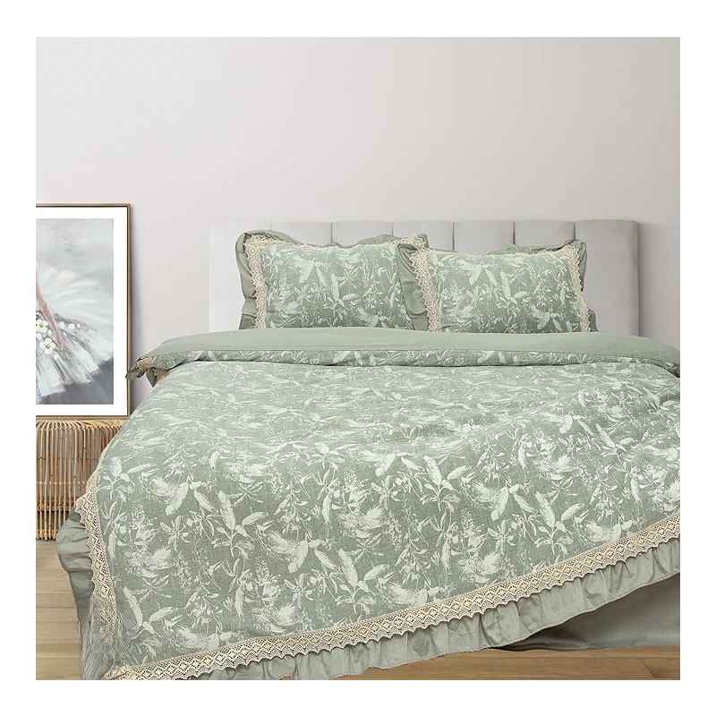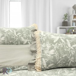 Плика и калъфки: Украсени с красива орнаментика в памучен жакард, допълнени от стилна драперия и дантела за луксозен акцент.