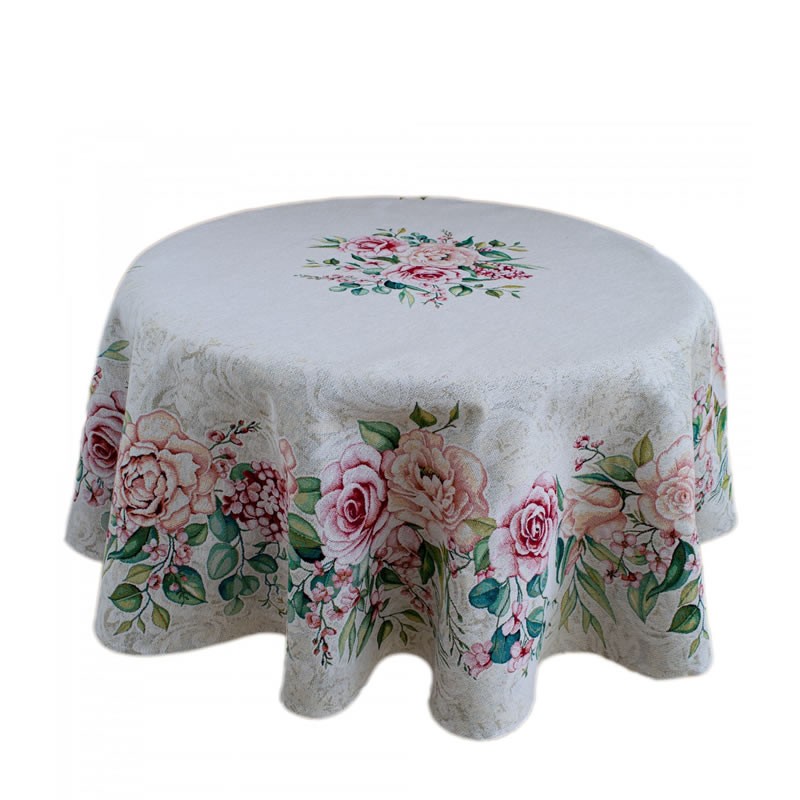 Представяме ви нашата изискана луксозна покривка за кръгла маса в хипнотизиращ розов нюанс, предоставена ви изключително от NANI.BG. Издигнете нивото на трапезата си с тази очарователна покривка, която излъчва разкош и изтънченост. Украсена с деликатен гирлянд от ароматни рози в пепеляво розово и бледожълто, придружени от буйни зелени листа, тази покривка създава наистина вълшебна атмосфера. Независимо дали става дума за обикновено събиране или грандиозно тържество, този шедьовър от жакардова тъкан придава елегантност на всеки повод. Потопете се в красотата на тази луксозна покривка за маса и се отдайте на хубавите неща в живота. Поръчайте сега от НАНИ.БГ и превърнете трапезарията си в райско кътче на лукса.
