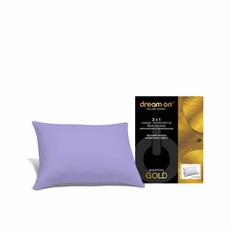 2 в 1 КАЛЪФ-ПРОТЕКТОР ЗА ВЪЗГЛАВНИЦА, непромокаем и двойнодишащ Smartcel Gold Lila