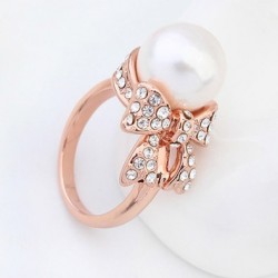 Елегантен, позлатен пръстен, инкрустиран с луксозни кристали и красиви перли . Моделът е с отлично качество на изработка, стилен и изящен дизайн, подходящ за всяка възраст и вкус. Позлатен с 18 каратово розе голд злато, което прави блясъка му неустоим и го предпазва от потъмняване. Възможен размер на пръстена по заявка - от 16 до 18.2 мм. вътрешен диаметър. Размера на вашия пръстен може да определите тук. Продуктът е опакован в луксозна подаръчна кутийка и се предлага със сертификат.