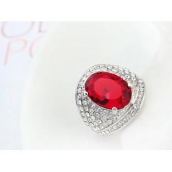 Нежен, позлатен пръстен, инкрустиран с луксозни кристали . Моделът е с отлично качество на изработка, стилен и елегантен дизайн, подходящ за изискани дами. Позлатен с 18 каратово бяло злато, което прави блясъка му неустоим и го предпазва от потъмняване. Продуктът е опакован в луксозна подаръчна кутийка и се предлага със сертификат.