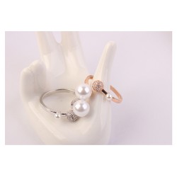 Елегантен, позлатен пръстен, инкрустиран с луксозни кристали и перли . Моделът е с отлично качество на изработка, стилен и изящен дизайн, подходящ за всяка възраст и вкус. Позлатен с 18 каратово бяло злато, което прави блясъка му неустоим и го предпазва от потъмняване. Продуктът е опакован в луксозна подаръчна кутийка и се предлага със сертификат.