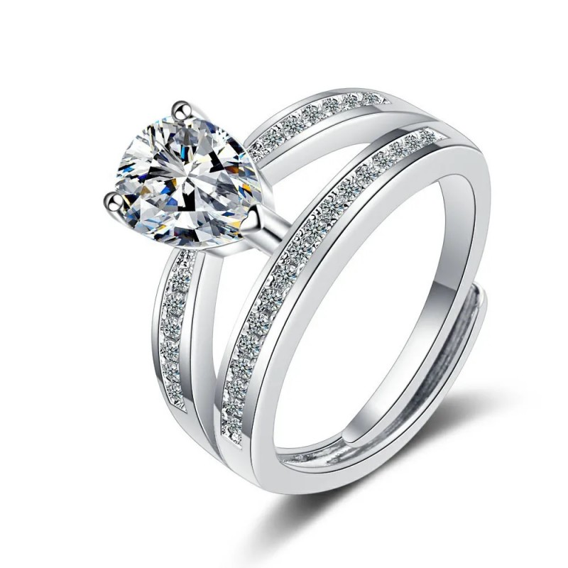 Елегантен пръстен, с фин дизайн, инкрустиран с блестящ, красиво фасетиран кристал. Моделът е с отлично качество на изработка и е подходящ за стилни и изискани дами. Позлатен с 18 каратово бяло златно покритие, което прави блясъка му неустоим и го предпазва от потъмняване. Продуктът е опакован в луксозна подаръчна кутийка и се предлага със сертификат.