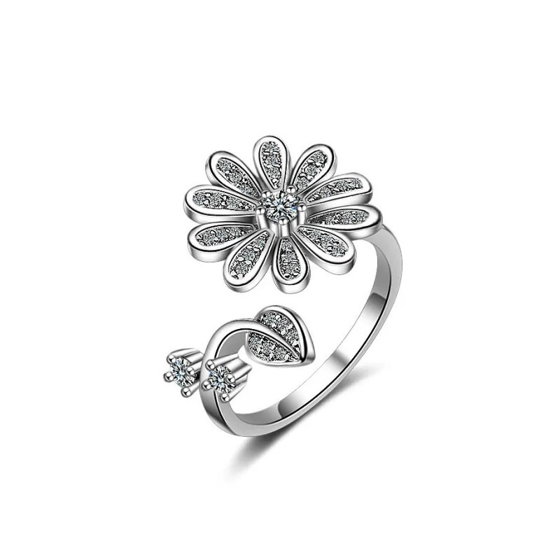 Елегантен, позлатен пръстен инкрустиран с блестящи кристали . Моделът е с отлично качество на изработка, стилен и изчистен дизайн, подходящ за нежни и изискани дами. Позлатен с 18 каратово бяло злато, което прави блясъка му неустоим и го предпазва от потъмняване. Продуктът е опакован в луксозна подаръчна кутийка и се предлага със сертификат.