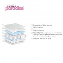 Модел DIPLOMAT DE LUX е комфортен двулицев матрак с ядро от високотехнологичен пружинен пакет Pocket System. Отделните пружини в покет пакета са индивидуално опаковани в текстилни джобове и независими една от друга. Всяка една пружина реагира отделно на натиска от човешкото тяло, а в своята съвкупност всички пружини идеално поемат извивките на тялото, поддържайки го в правилна позиция и без напрежение. Покет системата е с доказано най-дълъг живот и осигурява перфектни експлоатационни качества на матрака в продължение на години. Движението на пружините в сърцевината на матрака предоставя добра циркулация на въздуха и контролира влагата. От двете страни на покет ядрото има слоеве от еластична пяна, която не се деформира.