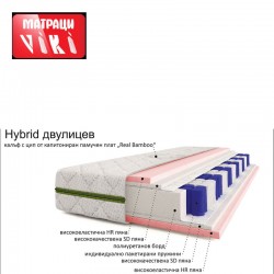 Двулицев матрак Хибрид е изработен от ядро от индивидуално пакетирани пружини Покет в комбинация с полиуретанов борд, върху който са разположени слой от висококачествена SD пяна в комбинация с високоеластична HR пяна. Калъфа на матрака е изработен от плат “Real Bamboo” с естествено бамбуково влакно и цип за безпроблемното му сваляне и пране.