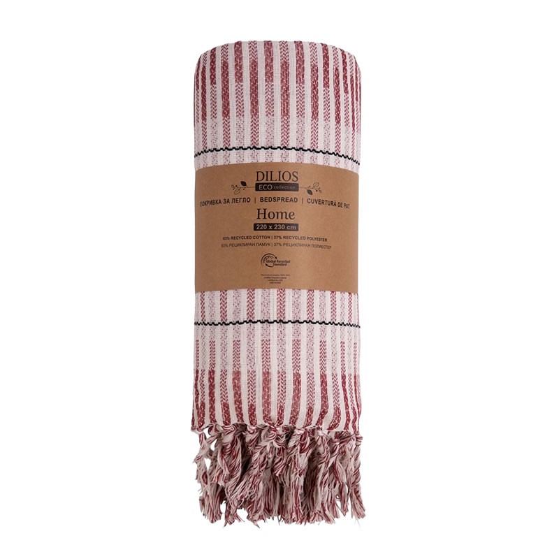 Покривка за Легло ХОУМ, в червено и екрю, от рециклиран материал