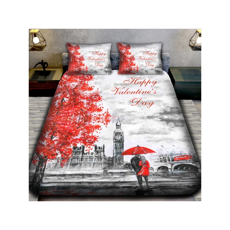 Материята, използвана за този мек и уютен спален комплект, е висок клас Поликотън. Поради своята устойчивост, материята запазва наситеността на цветовете и не губи формата си дори при многократни изпирания. Плътната и нежна нишка съдържа 80% памук и 20% полиестер. Плътността на плата позволява използването му както в зимния сезон, така и през летните горещини.