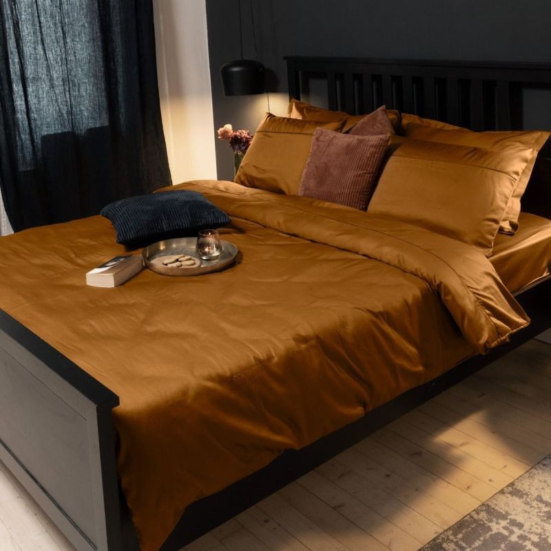 Внесете елегантност и съвременен стил в спалнята си чрез изискано спално бельо в цвят старо злато, декорирано с паспел. Изработен от висококачествен памучен сатен, този материал се отличава с изключителна мекота, фина текстура, висока здравина и ниско свиване. Спалното бельо е обработено със специална технология "easy care", която намалява намачкването след пране. Реактивното багрене на тъканта предпазва цветовете на спалното бельо за по-дълъг период. Пликът за завивка се затваря с копчета тик-так в долната си част и е декориран с паспел. Калъфките също са с паспел, който добавя усещане за лукс и е разположен от по-дългата страна на калъфката.