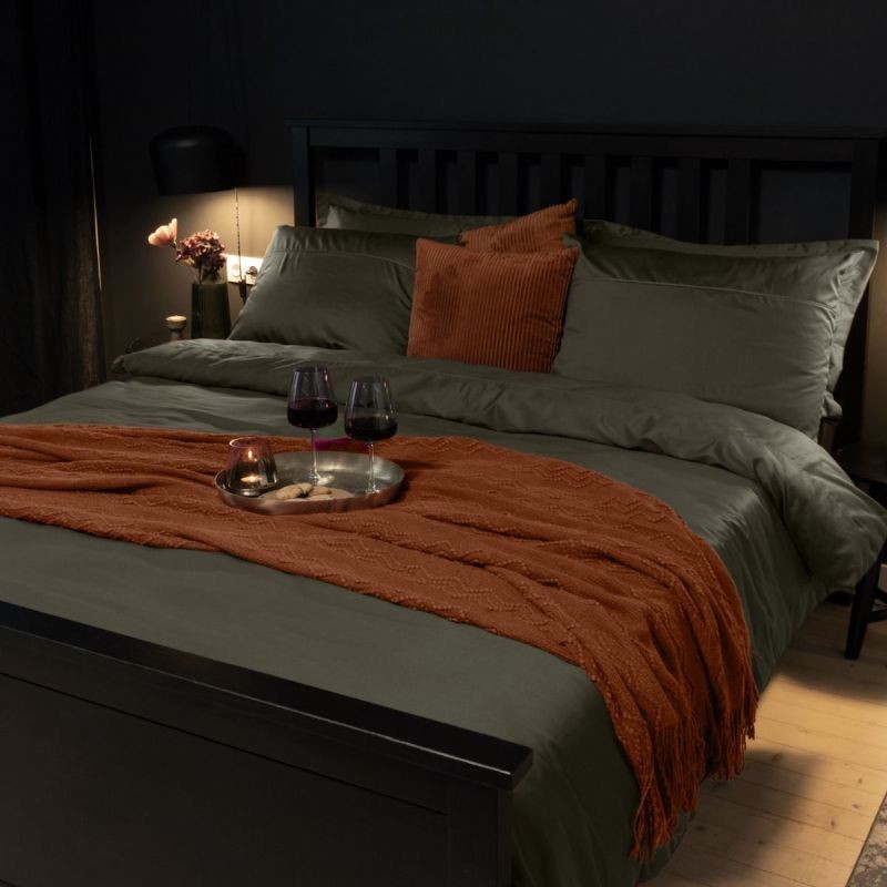 Внесете елегантност и съвременен стил в спалнята си чрез изискано спално бельо декорирано с паспел. Изработен от висококачествен памучен сатен, този материал се отличава с изключителна мекота, фина текстура, висока здравина и ниско свиване. Спалното бельо е обработено със специална технология "easy care", която намалява намачкването след пране. Реактивното багрене на тъканта предпазва цветовете на спалното бельо за по-дълъг период. Пликът за завивка се затваря с копчета тик-так в долната си част и е декориран с паспел. Калъфките също са с паспел, който добавя усещане за лукс и е разположен от по-дългата страна на калъфката.
