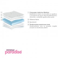 Модел Топер Бамбу има ядро от едностранно профилирана еластична пяна, която не се деформира. Предлага се с капитониран специален текстил Bamboo от едната страна, и капитониран висококачествен текстил в бял цвят от другата страна.